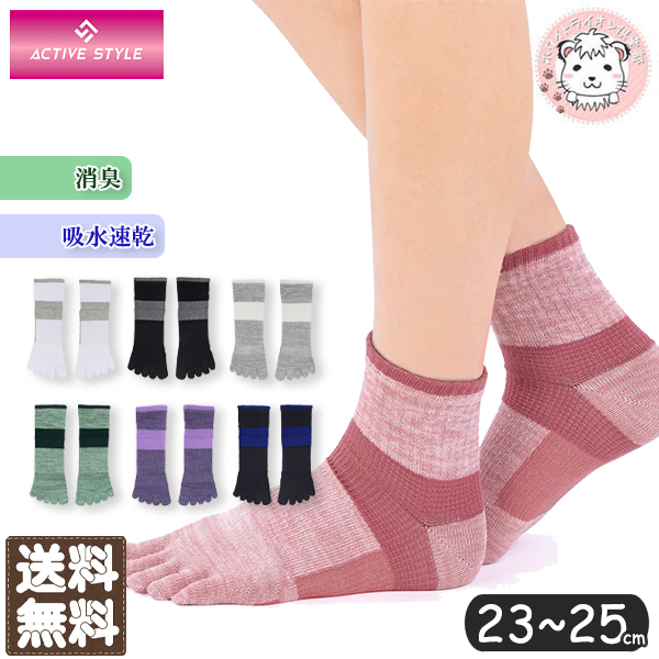 【グンゼ アクティブスタイル アーチ サポートパイル 5本指 ショートソックス ST0504 3足セット 23-25cm】