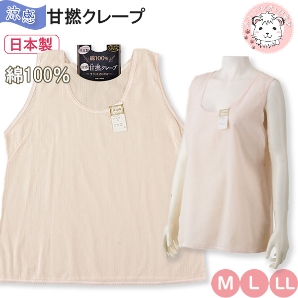 #甘撚クレープ #レディース #ラン型インナー #日本製 #婦人 #レディース #女性 #綿100% #コットン #涼感 #吸汗発散 #吸湿 #通気性 #ノースリーブ #クレープ #無地 #下着 #肌着 #インナー #ラン型 #タンクトップ #株式会社聖 #ホワイトライオン倶楽部