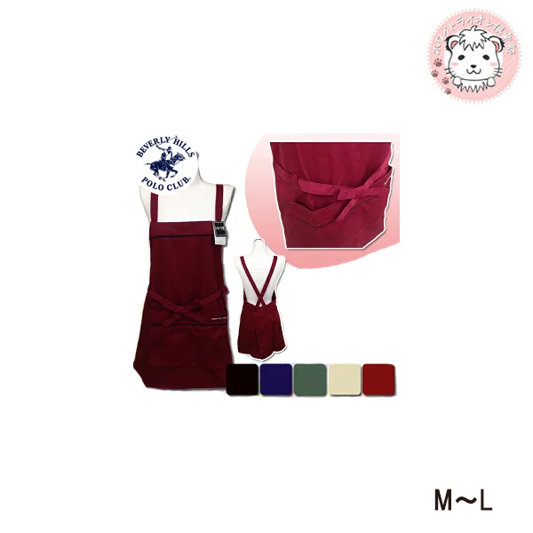 【ビバリーヒルズポロクラブ】ショート丈前縛りエプロンです。大きめな2つのポケット付きです。シンプルなエプロンだから、男性も着用していただけます。